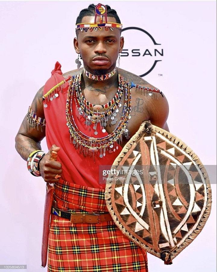 Tanzanian Singer Naseeb Abdul alias Diamond Platnumz represented Swahili nation in a major way at the Bet Awards 2021 Red-carpet with his outfit.