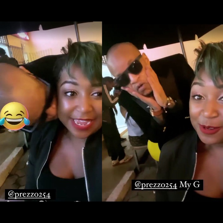 Celebrated Journalist Betty Kyallo recently debunked the rumours that she and singer Prezzo are not on good terms. She shared videos of herself and the singer on her Insta-stories hanging out at the opening ceremony of a new boutique in Lavington.   In one of the videos, Prezzo and Betty were engaged in small talk, and she told him that people think that they are enemies.  The singer also asked Betty if he could give her a peck on the cheek, but she declined and jokingly responded that she would get dumped if he did so.Before she could finish her statement, Prezzo leaned towards her and kissed her on the cheek. The rumour of their beef started in 2016 after hitting on Betty Kyallo on live TV during an interview.  At that time, Betty has just wedded her first husband, Dennis Okari, and she even told the singer about it, but he continued flirting with her.   Follow this blog for daily and consistent entertainment and celebrity in East Africa.