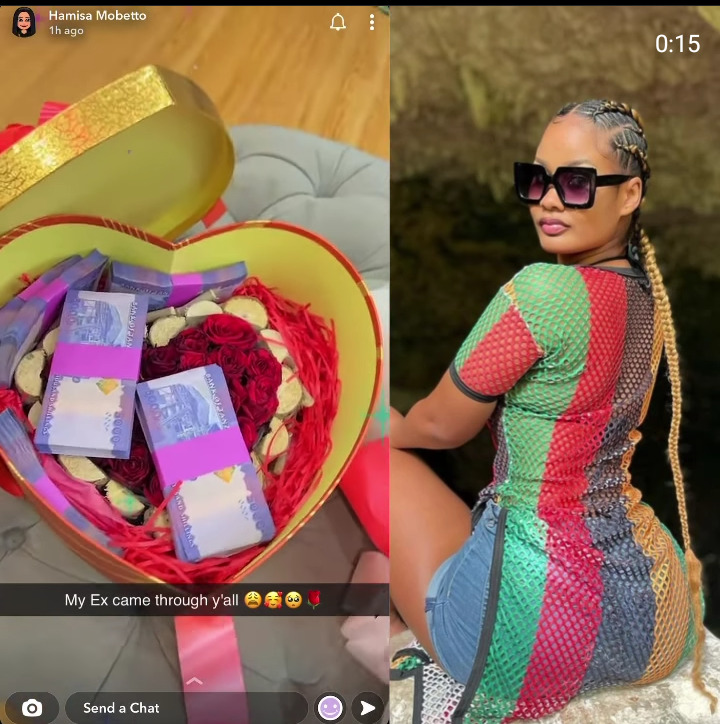 Hamisa Mobetto took to her social media last evening to praise one of her exes for spoiling her on Valentine’s Day.